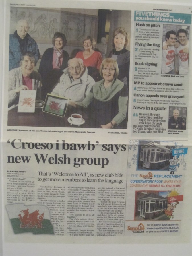 Hysbys yn Lancashire Evening Post Mawrth 2014